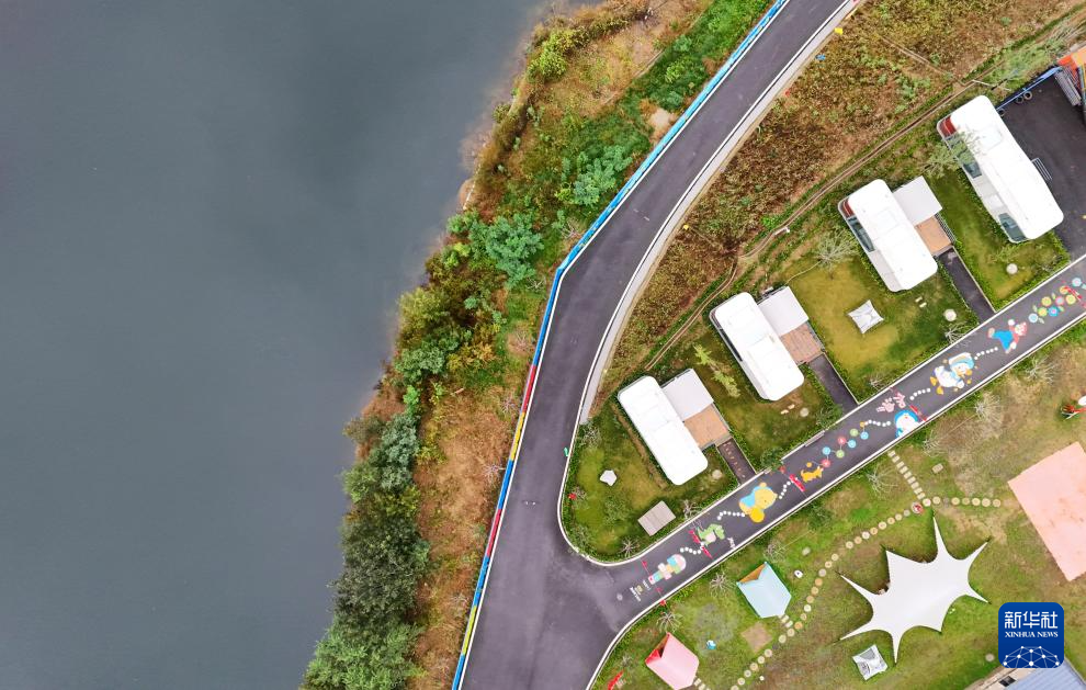 这是10月10日拍摄的青岛市南舒镇青山秀湖度假区(无人机照片)。近年来,山东省青岛市南舒镇不断利用闲置土地资源,改造废弃学校、矿山,建设胶东大院、青山秀湖等农业、文化、旅游一体化项目,增加了周边村民的就业和收入。新华社记者 丁宏发 供图