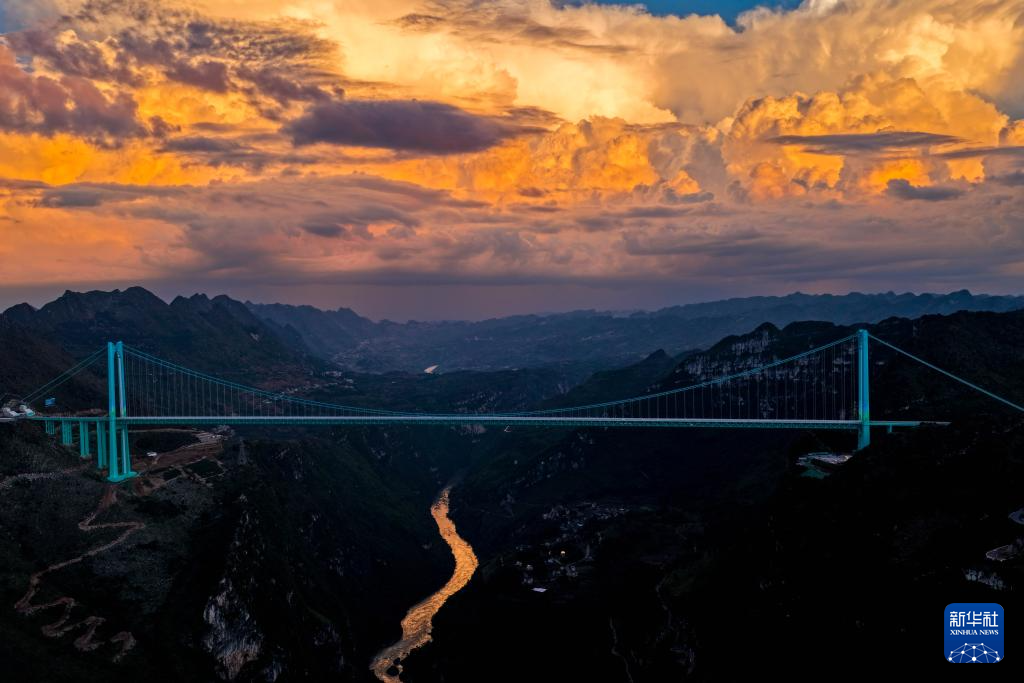 Huajiang Canyon桥(无人机照片)在9月28日出现的日落下。经过三年的建设,吉津岛Huajiang峡谷桥是新世界最高的桥梁,并于9月28日正式完成并在交通中正式完成。HuajiangCanyon桥梁是Guajiang Canyon Bridge by Guizhou lizhi lizho lizhi lizhi lizhi。该桥的总长度为2,890米,其主截面为1,420米。目前,它是世界山喉咙中最大的钢制装甲悬架桥。那座桥的覆盖物距水面垂直垂直625米,超过了第一座桥梁,该桥将成为新世界最高的桥梁,被称为“水平和垂直上的最佳”。在不同的时间不同的时间,世界上最高的桥梁显示出一个品种Y美丽的风景。照片:杨文宾记者,新华社通讯社