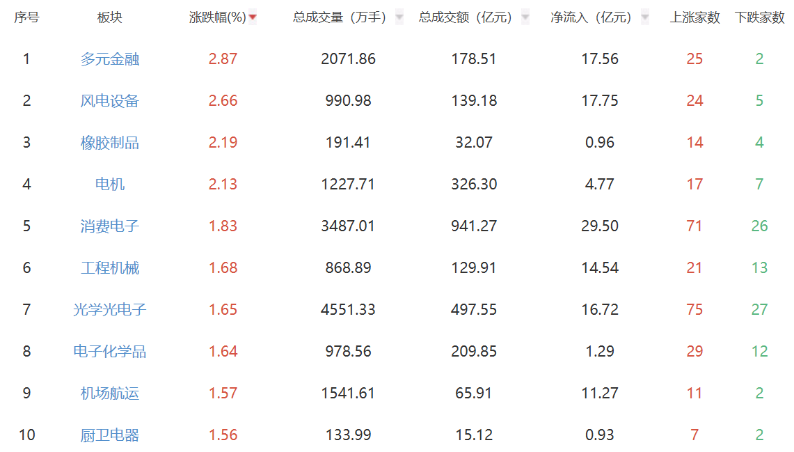 中国经济网络北京,9月17日。今天的三个主要行动指数已集体增加。最后,上海化合物指数为3,876.34点,增加了0.37%,销售额为100667亿元。深圳市成分指数为13,215.46分,增长1.16%,销售额为137,0.59亿元人民币。 Chinext指数为3,147.35分,增长了1.95%,销售额为662.944亿元。关于各个部门,诸如以增长率顶部分类的多元化财务,风力涡轮机和橡胶产品等部门,而贵金属,旅游,酒店和酒类等部门则分类为下降的上部。 A-CARPART的各个部门的上升和下降分类