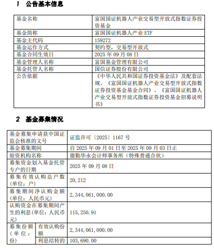 Fuile Guozheng机器人行业的ETF成立于23亿元人民币
